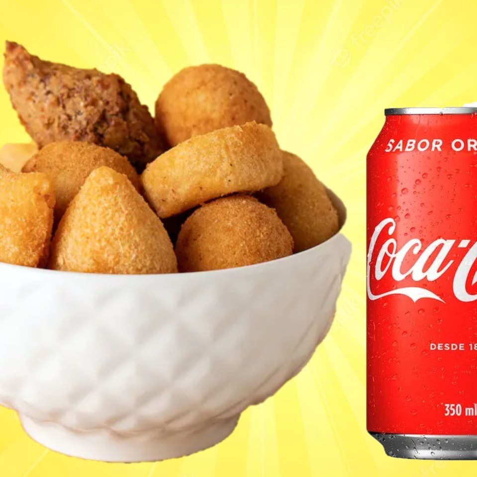 100 Salgados Até 50% Off + Coca Cola Original 2l