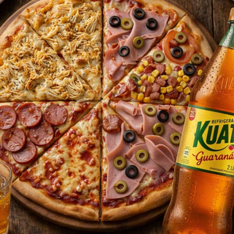 Pizza 4 Sabores (8 Fatias) + Kuat 2 Litros