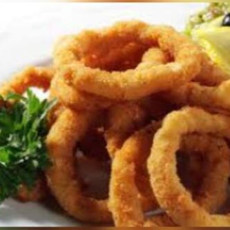 Anéis de lula empanados em farinha Panko.
