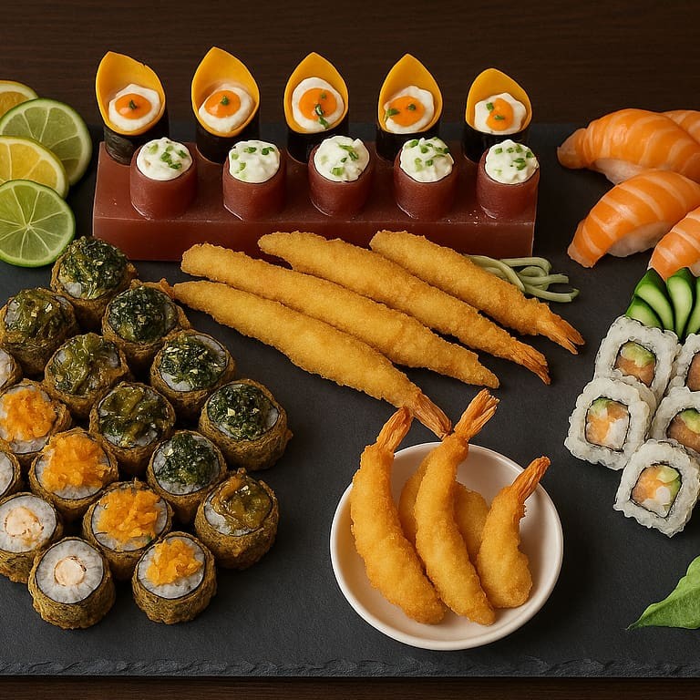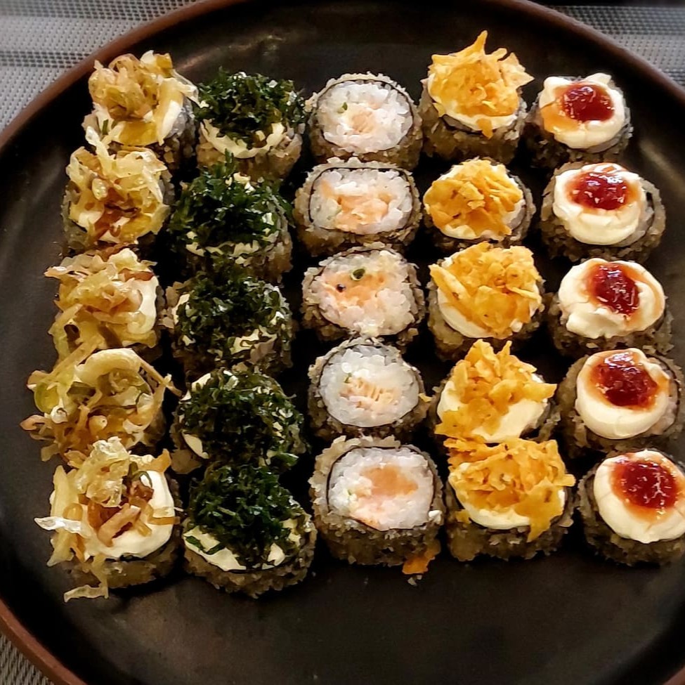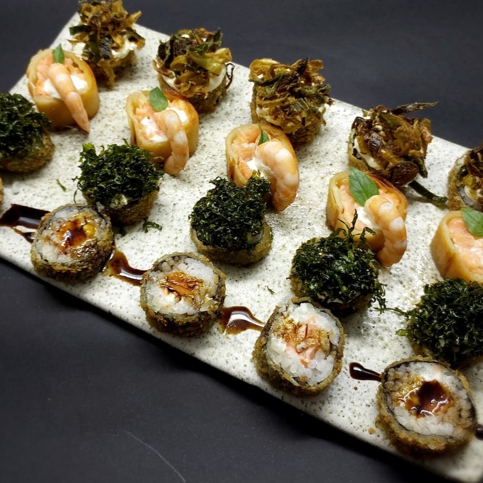 Surpreenda-se. Um prato exclusivo para esse inverno, com peças personalizadas e quentinhas, pra aquecer seu inverno. 6 Camarões empanados 6 Iscas de tilápia na panko 5 Crocantes Philadelphia 5 Hot Couve 5 Hot Doritos 10 Hot Philadelphia 2 Coxinhas de salmão 2 Rolinho Primavera 4 Tartelete de Goiabada com cream cheese