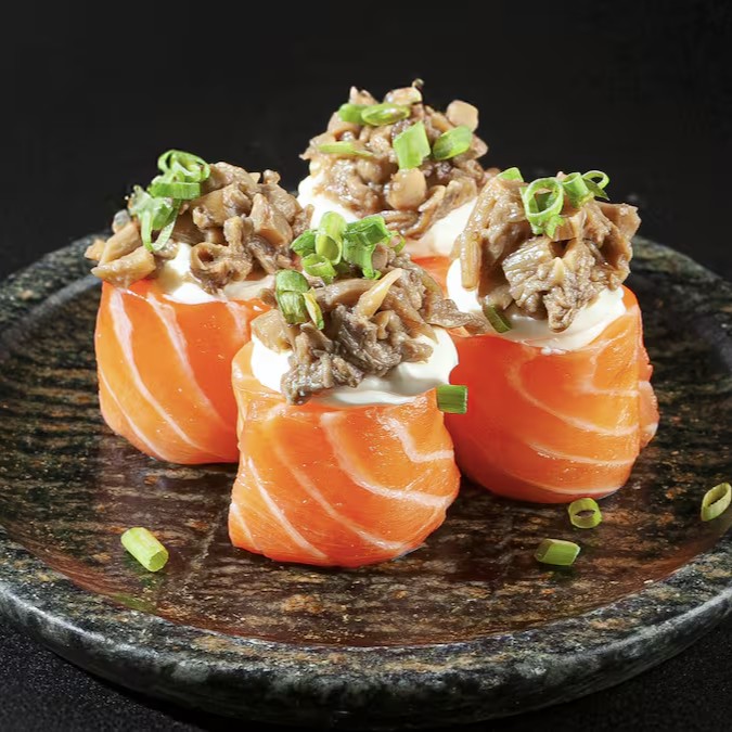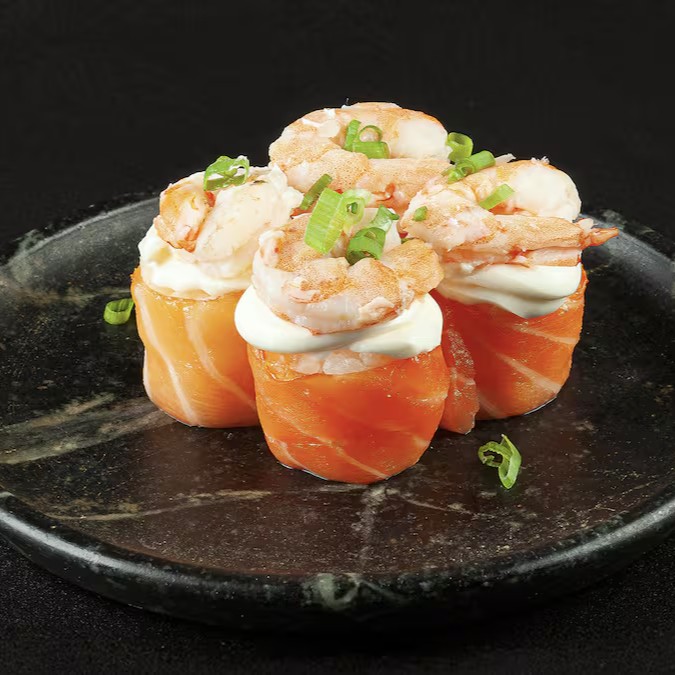 - 5 Gunkan Salmão com Molho Sweet Sauce;