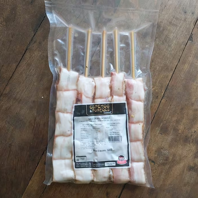 Saboroso Medalhão de Boi Acebolê, um dos mais nobres e suculentos medalhões da nossa cozinha. Composto pelo mais requintado miolo de acém, magnificamente envolvido por uma crocante e saborosa fatia de bacon, é finalizado com o toque delicado de mini cebolas, que adicionam um sabor inconfundível ao prato. O pedido inclui cinco espetos, totalizando a generosa quantidade de 500 gramas. Uma experiência gastronômica que promete satisfazer os paladares mais exigentes.