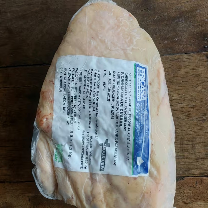 A mais saborosa e suculenta Picanha uruguaia Fricasa de angus, congelada com peso médio de 1,100kg.