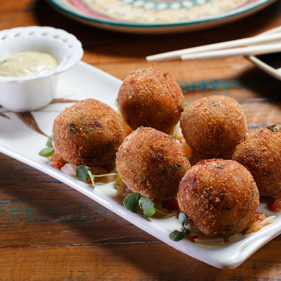 Camarão envolto em massa crocante. Acompanha 1 molho agridoce da casa.
