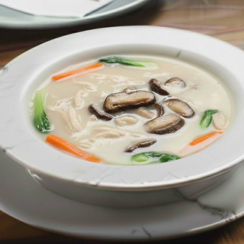 Frango, broto de bambu, cenoura e acelga. Acompanha pão chinês (bun).
