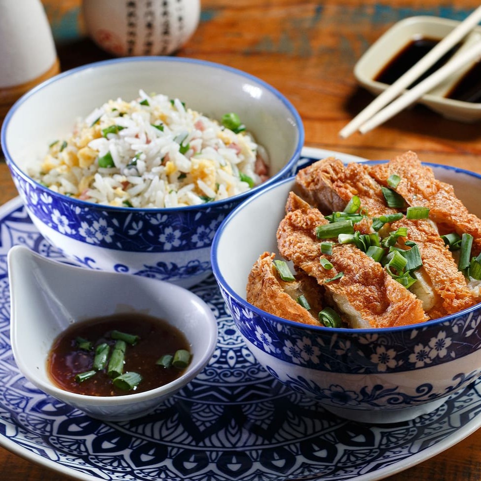 Combo: rolinho + um prato principal + um arroz + uma sobremesa. Acompanha 1 molho agridoce da casa. (vegetariano e vegano)
