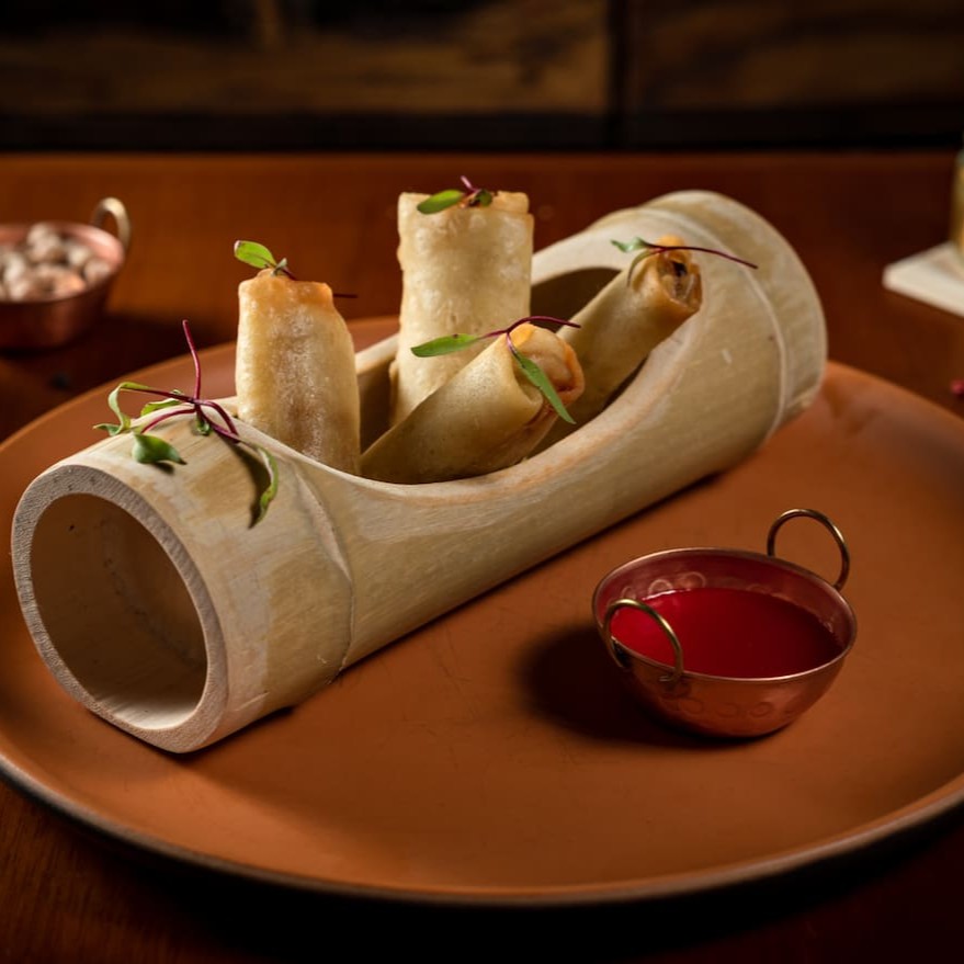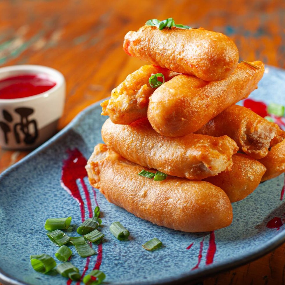 Rolinho tradicional, vegetariano, de queijo ou de camarão. Acompanha 1 molho agridoce da casa.