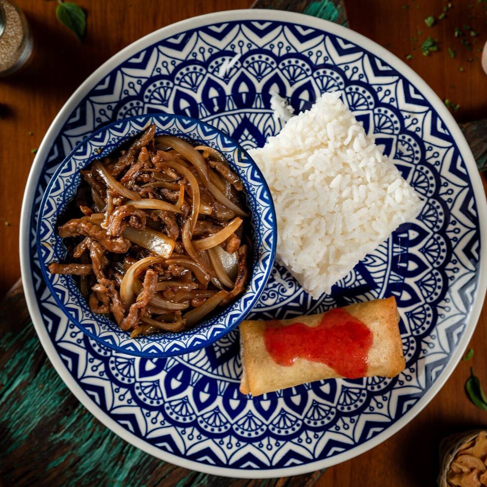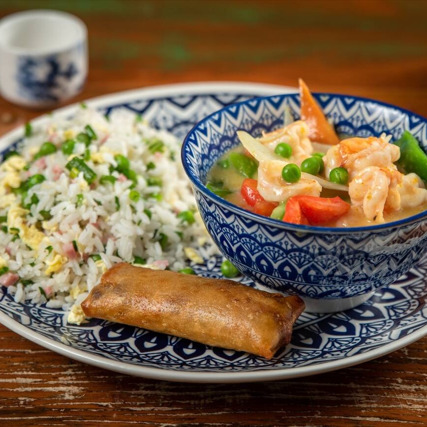Combo: rolinho + um prato principal + um arroz + uma sobremesa. Acompanha 1 molho agridoce da casa.