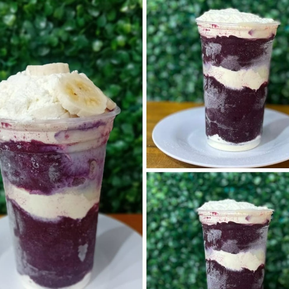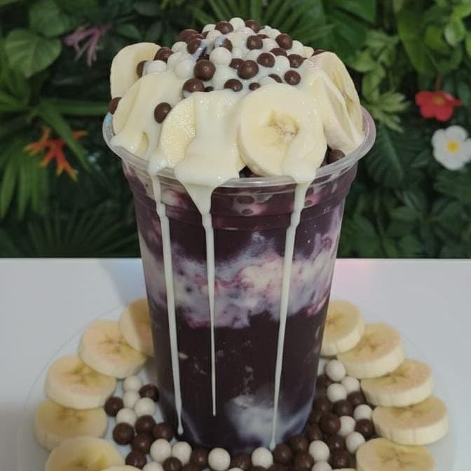 Creme de açaí delicioso e cremoso com leite condensado, banana e chocobol. Não mandamos adicionais separados, vão em camadas nos copos. Não trocamos adicionais, apenas retiramos.