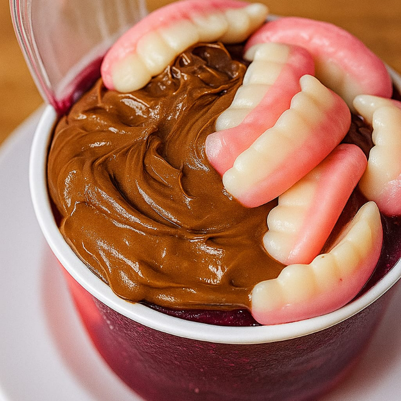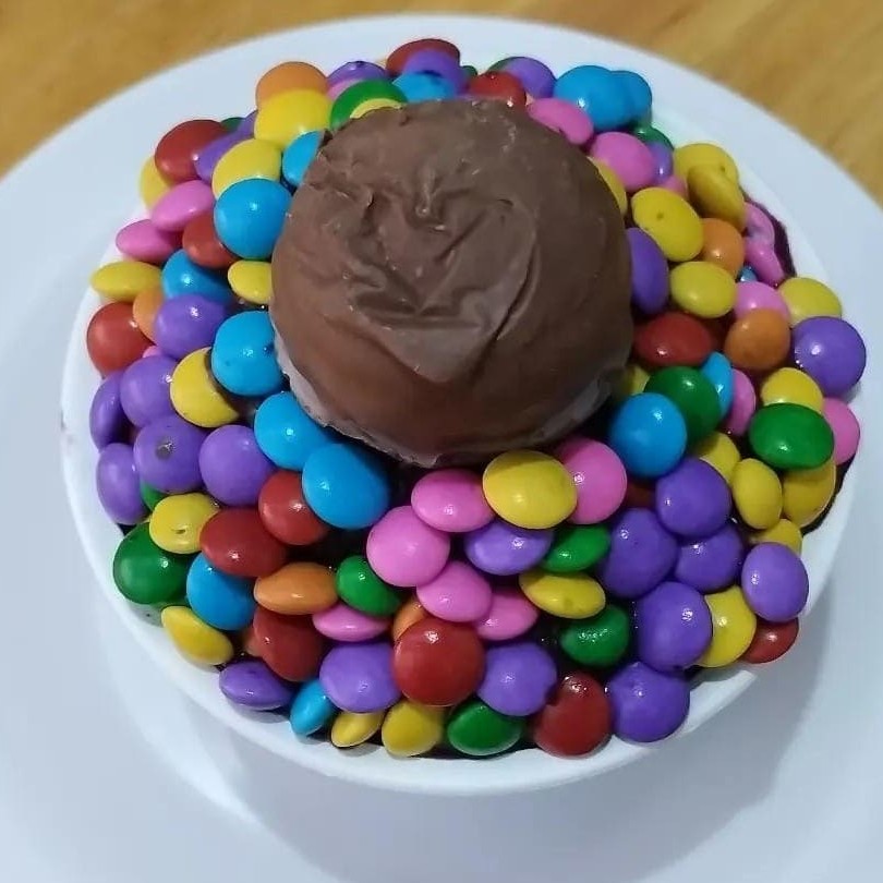 Creme de açaí, bombom Sonho de Valsa, Confete e leite condensado.