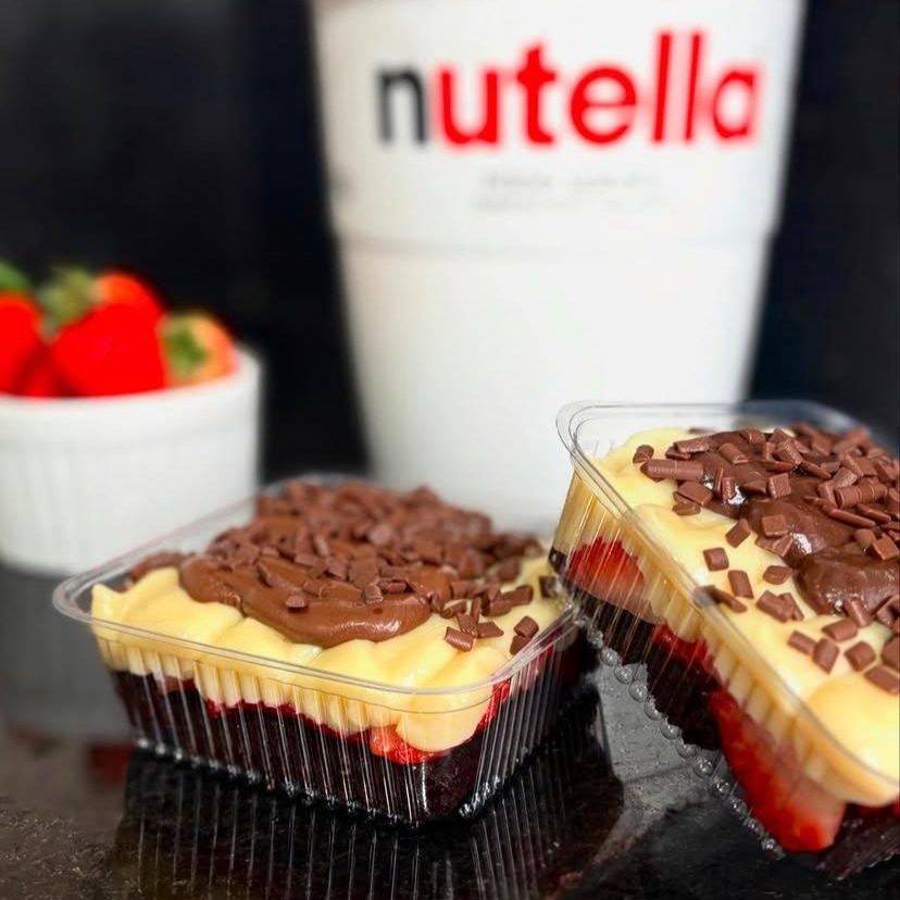 Escondidinho de Brownie com uma camada de Brownie Creme de Ninho com Chocolate Laka Morango e Nutella