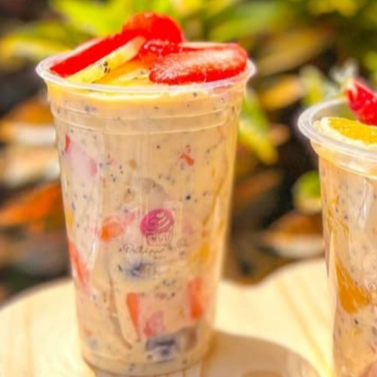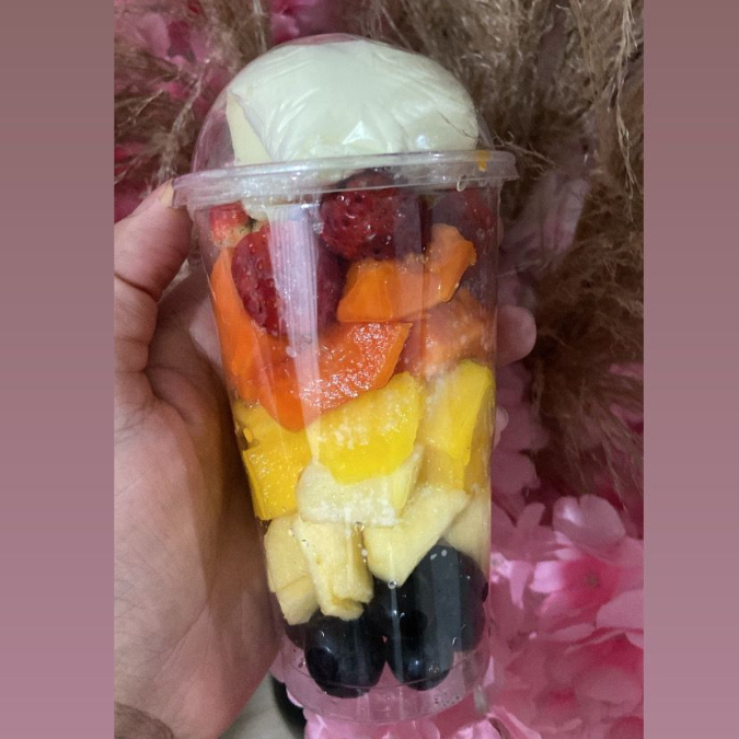 Salada de Frutas Frescas Misturadas com um delicioso Creme de Maracujá, Uva, Maça, Manga, Mamão e Morango e laranja. 200ml