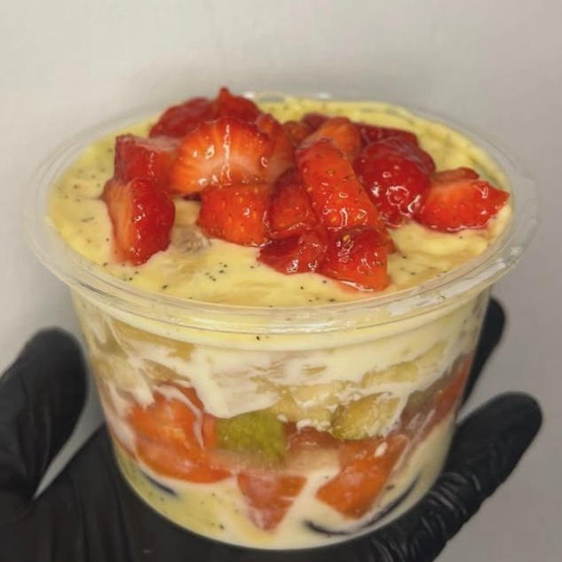 Salada de Frutas Frescas Misturadas com um delicioso Creme de Maracujá, Uva, Maça, Manga, Mamão e Morango. 300ml