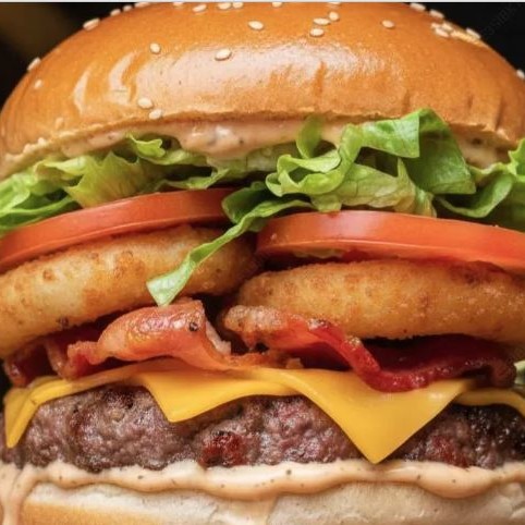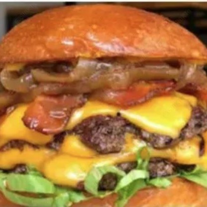 Pão brioche, queijo cheddar, dois deliciosos burguers 100g, bacon fatiado, alface americano ,tomate, cebola roxa e deliciosa maionese da casa.