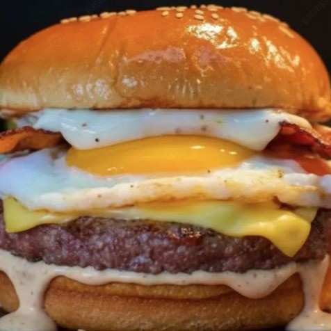 Pão brioche, Delicioso burguer 150g,Queijo cheddar, Bacon fatiado, ovo e nosso delicioso molho da casa.