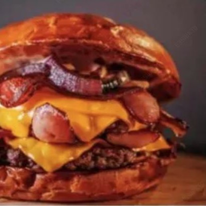 Pão Brioche.queijo cheddar.dois deliciosos burguers 100g,bacon fatiado e maionese da casa.