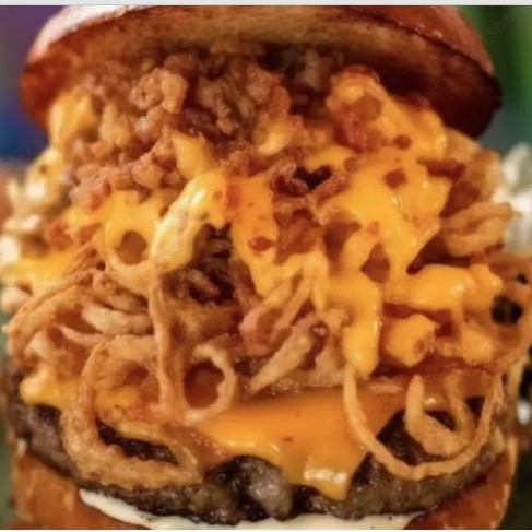Pão Brioche, delicioso Burguer 150g, deliciosas cebolas empanadas, queijo cheddar, bacon fatiado e maionese da casa.