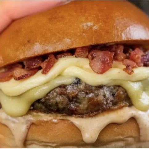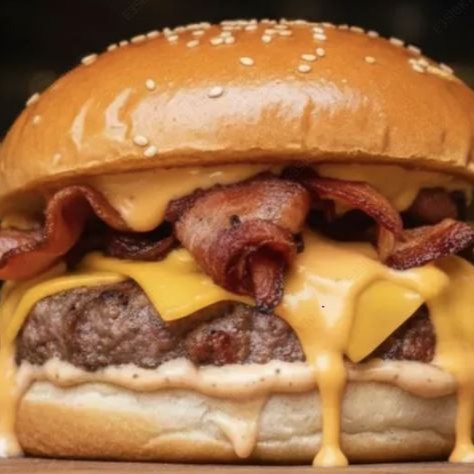 Pão Brioche, 3 Deliciosos Burguers 150g, Queijo Mussarela,Queijo Cheddar, Bacon Fatiado e maionese da casa.