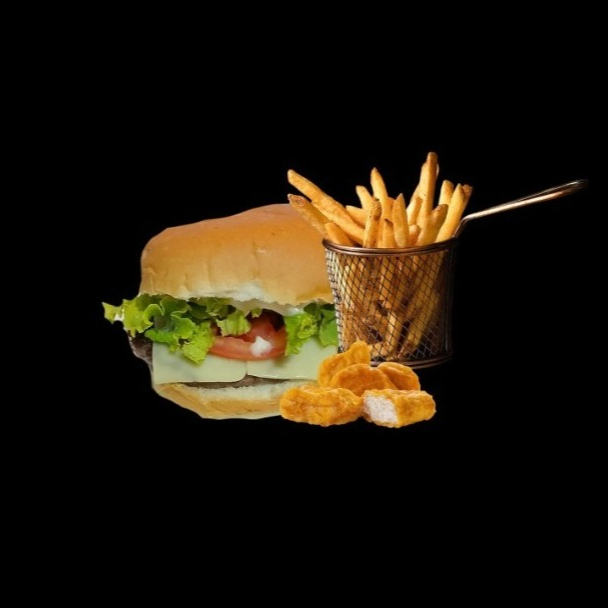 Pão Brioche, Carne 90g, Molho Cheddar, Ovo, Milho, Muçarela, Jota Molho, Alface, Tomate + 90g Batata Frita