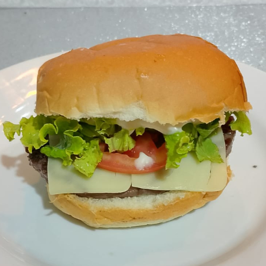 Pão Brioche, Carne 56g, Muçarela, Jota Molho, Alface, Tomate, Repolho, Cenoura + 90g Batata Frita