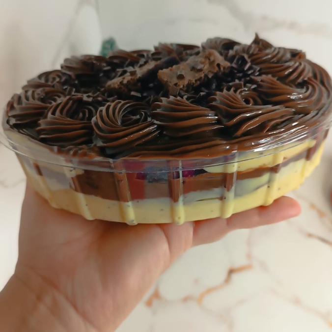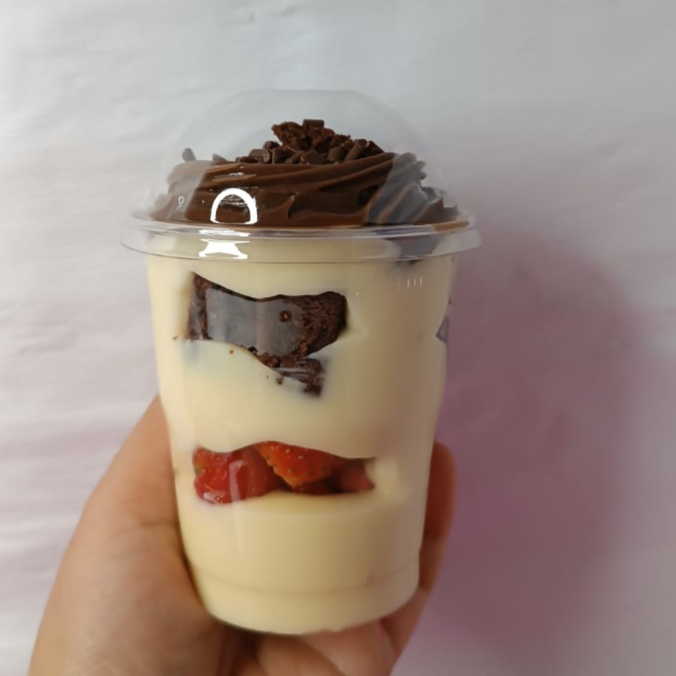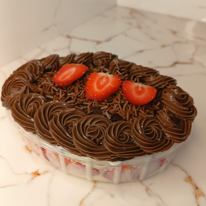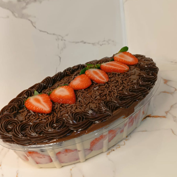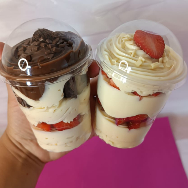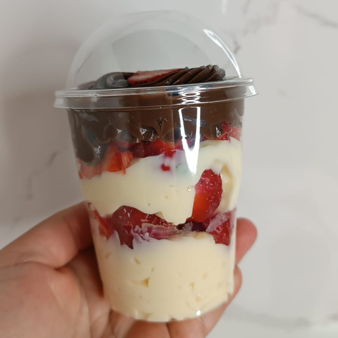 Camadas irresistíveis de creme de Ninho, morangos fresquinhos e brownie macio, tudo finalizado com uma generosa cobertura de chocolate. Um sabor que conquista desde a primeira colherada!