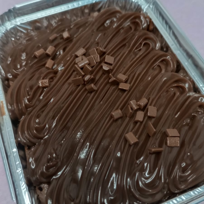 Brownie macio e bem chocolatudo, com cobertura cremosa de chocolate por cima Uma combinação perfeita para os amantes de doce!