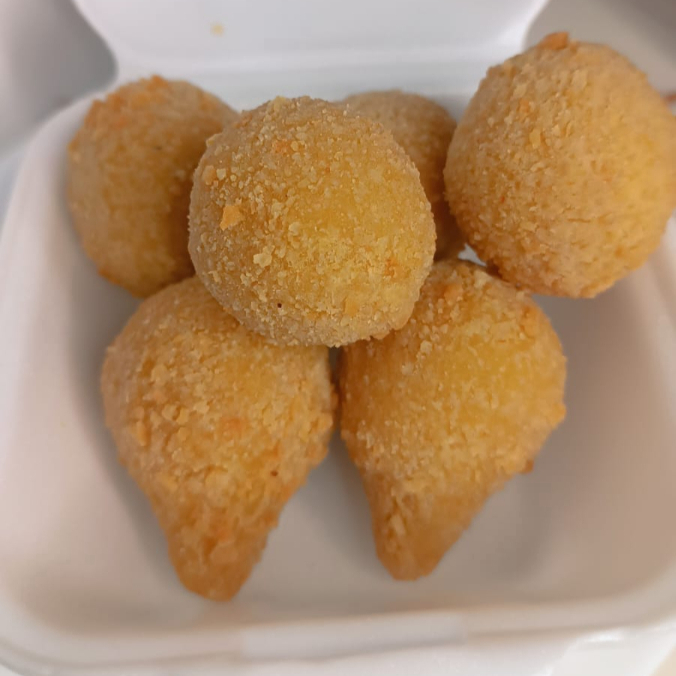 4 coxinhas 2 bolinha de queijo fritos na hora