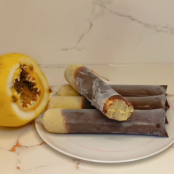 Chup-chup de maracujá com casquinha crocante de chocolate Cremoso, refrescante e cheio de sabor! Feito com maracujá e finalizado com uma deliciosa casquinha crocante de chocolate 🍫💛