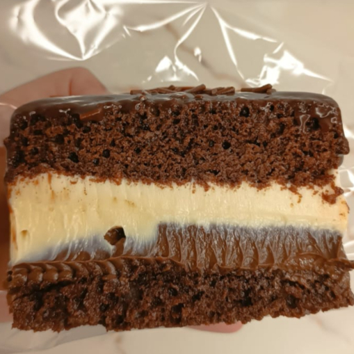 Fatia Choconinho 🤤🍫 Massa de chocolate molhadinha com recheio cremoso de Ninho e chocolate, combinação perfeita e irresistível!