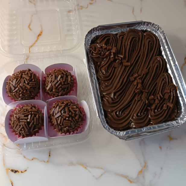 4 brigadeiros gourmet cremosos + 1 brownie macio e chocolatudo. Uma combinação perfeita para quem ama chocolate, feita com ingredientes de qualidade e muito capricho.