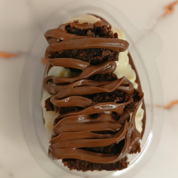 Casca de chocolate recheada com creme de Ninho super cremoso, pedaços de brownie macio e uma generosa camada de Nutella. Uma combinação irresistível pra quem ama doce