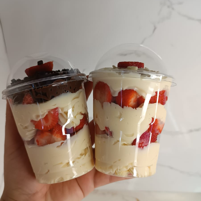1 Bombom No Pote Ninho Morangos E Brownie 1 Copo Da Felicidade Ninho Com Morangos Frescos