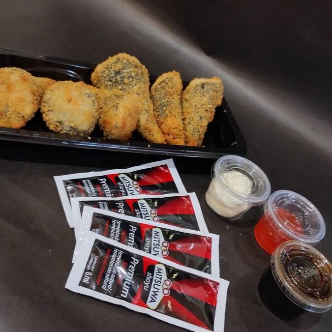 Acompanha ( 3 sachês shoyu, creme cheese , geleia de pimenta e teriaki)