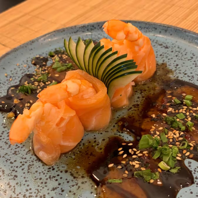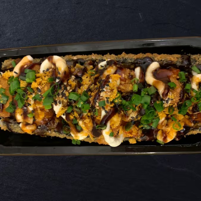 Este deslumbrante Makimono vem repleto de arroz cuidadosamente cozido, envolto em um recheio suntuoso de camarão na manteiga, que é simplesmente irresistível. Adicionamos uma camada de cebolas caramelizadas para dar um toque agridoce ao prato, e o cream cheese acrescenta uma textura cremosa inigualável.