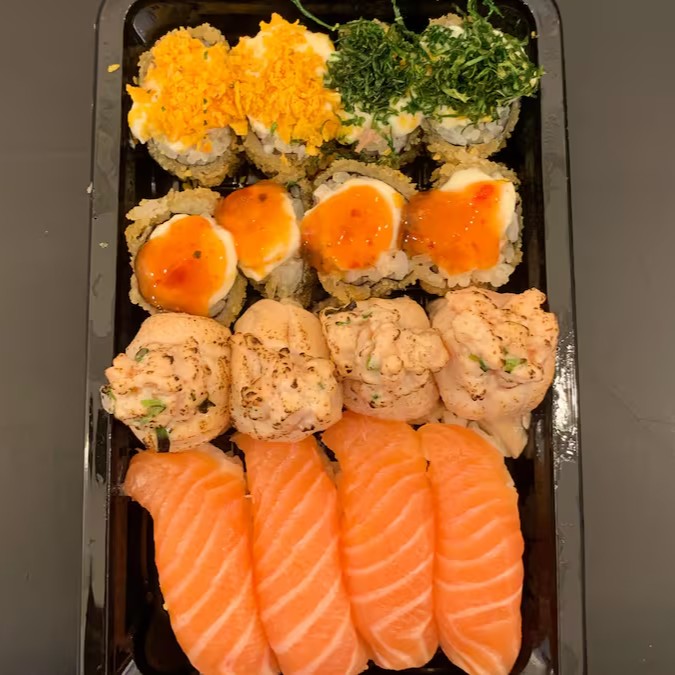 Atenção: Não enviamos shoyu, teriyaki, porta shoyu e hashi. Além disso, não fazemos modificações no prato.