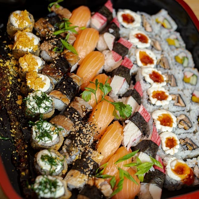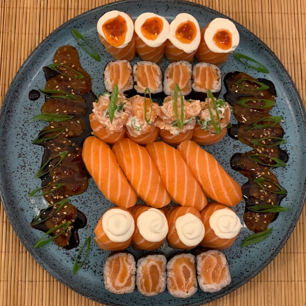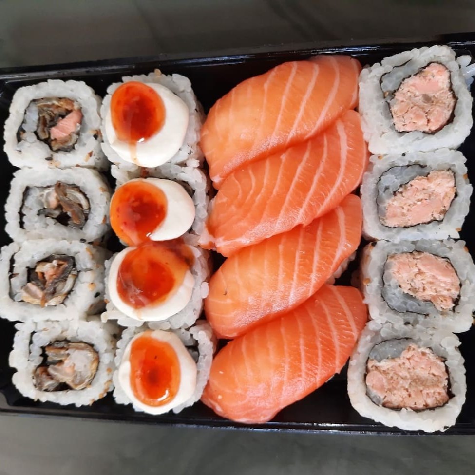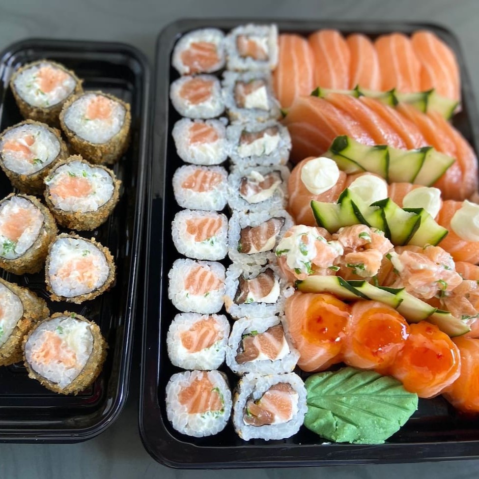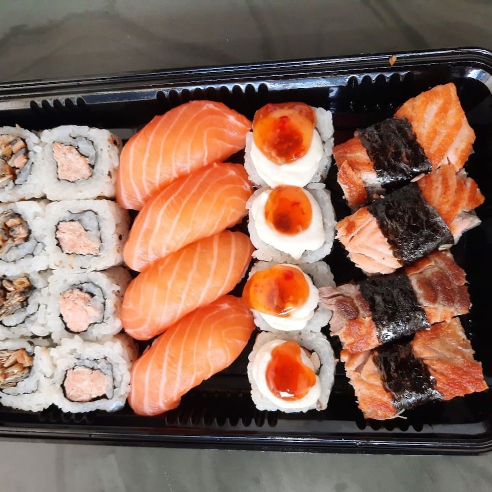 Combinado Salmão Mix (46 Pcs) Quantidade: 46 Peças 5 Niguiri de salmão 5 sashimi de salmão 4 Uramaki Filadélfia 4 Uramaki Califórnia 4 Uramaki Skim 8 Maki de Salmão 8 Hot Doritos 8 Hot Couve *Atenção: Não enviamos (Shoyu,Teriaki, Porta Shoyu e Hashi)* Obs: Não fazemos modificação no Combo. _ _ #japonesa #chinesa #shoyo #salmão #camarão #suhi #yakisoba #temaki