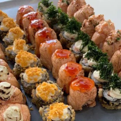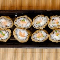Sushi enrolado com alga por fora, recheio de Salmão com Cream Cheese, empanado e frito. Quantidade: 8 unidades. *Não acompanha (Shoyu,Teriaki, Porta Shoyu e Hashi)*