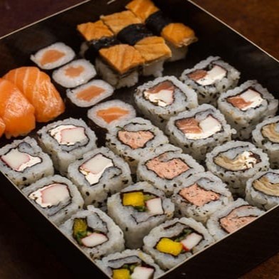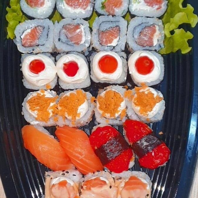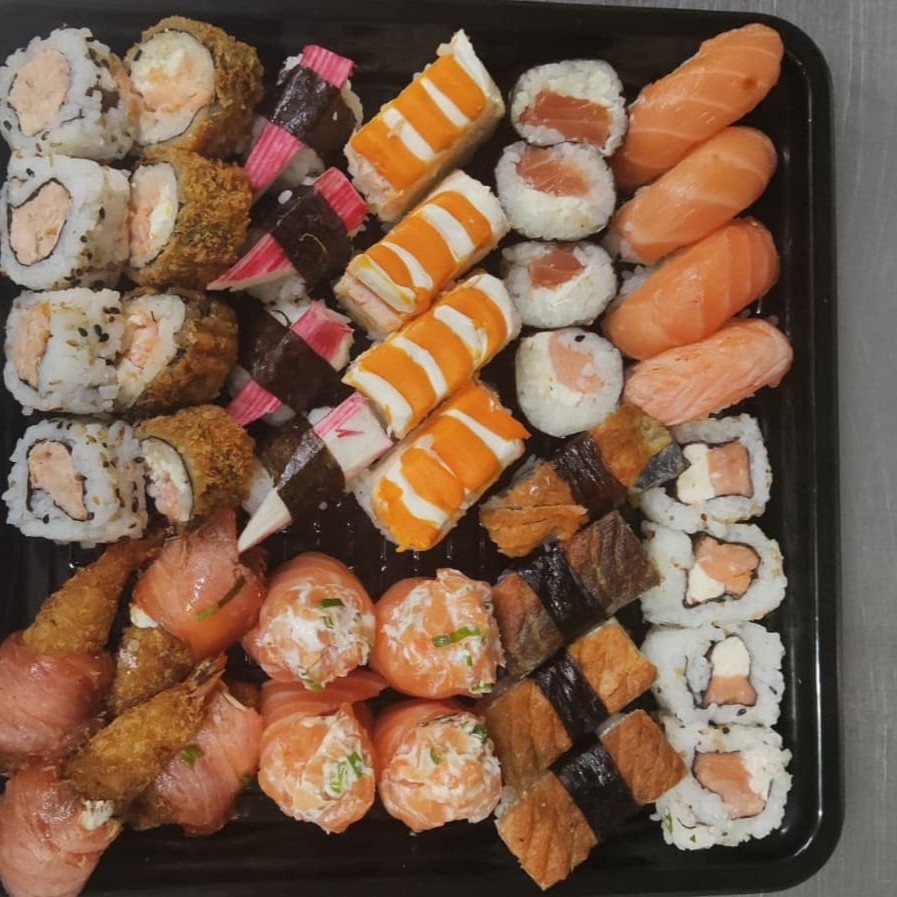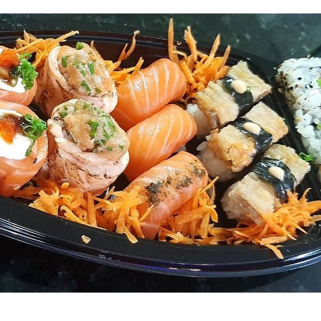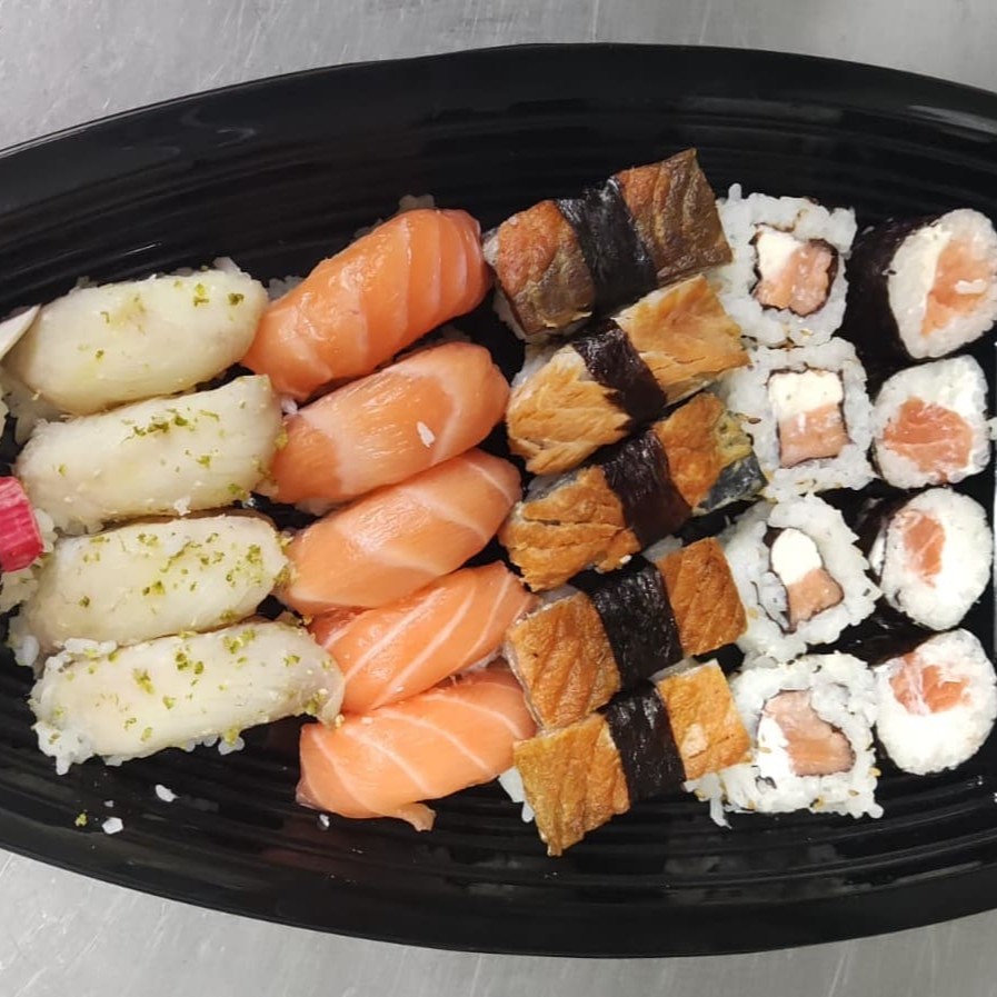 3 niguiri salmon 4maki salmon 3 niguiri skim 4 uramak camarao 4 uramak california 6uramak filadelfia 5 uramak salmao grelhado
