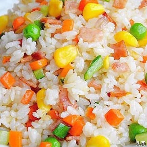 Arroz temperado com cenoura presunto ervilha milho verde e ovo,porçao aprocimadamente 350g