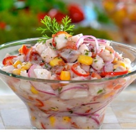 Peixe Branco marinado no limão com cebola roxa, Pimenta biquinho e temperos especiais