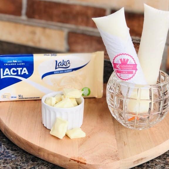 Base de chocolate branco laka com pedaçinhos de chcolate