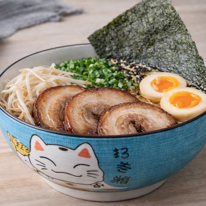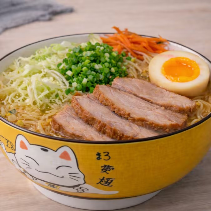 Você escolhe o caldo quentinho do seu Lámen: Missô, Shoyu ou Tonkotsu. Escolha também opções deliciosas de ingredientes que acompanharão seu macarrão, como ovos cozidos cremosos e marinados, alho confitado e broto de feijão. Temperado com cebolinha e gergelim.