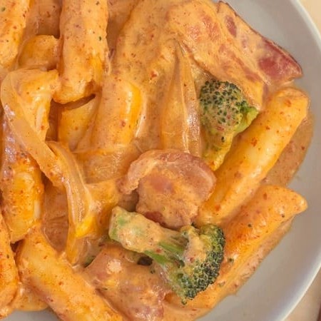 Bolinhos de arroz cozidos em molho coreano jajang.