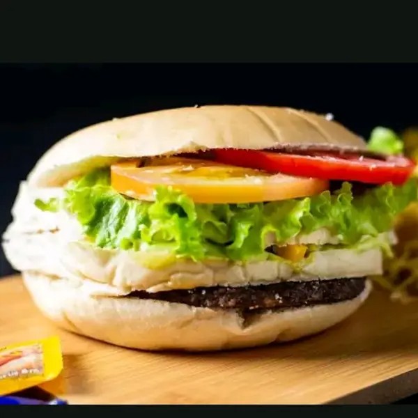 Pão hambúrguer ovo bacon mussarela presunto alface tomate batata palha e sachê de catchup maionese e um guaraná de 1litro