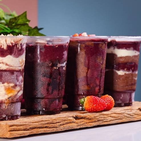 Creme de açaí, creme de avelã leite em pó e banana ou morango.