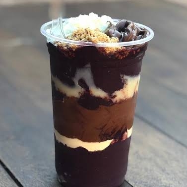 Creme de açaí, creme de avelã, leite em pó , banana e chocobol