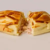 Pastel Italiano com recheio de presunto, mussarela e frango.