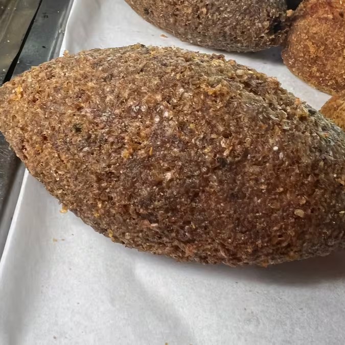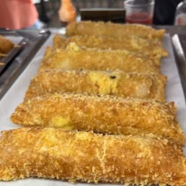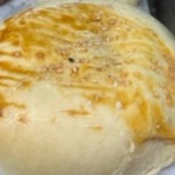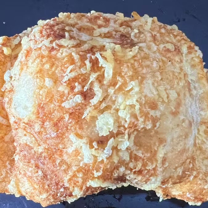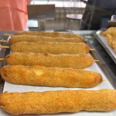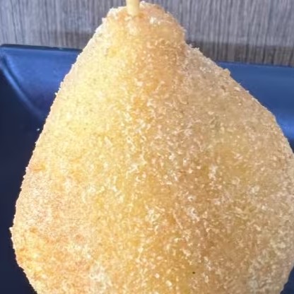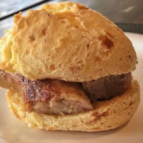 Pão de queijo com 02 pedaços de linguiça de porco caseira.