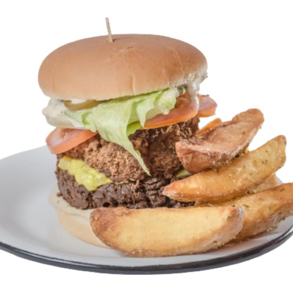 Pão brioche selado, burguer de lentilhas, cogumelo empanado, guacamole, jalapenõ, tomate alface e maionese da casa. Vai com as nossas fritas crocantes e sequinhas! ***Não trocamos e nem retiramos ingredientes do prato***