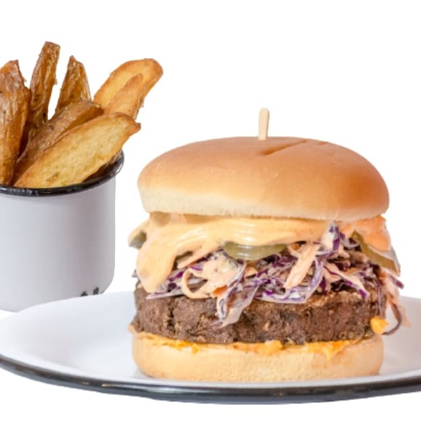 O burguer mais amado! Pão brioche selado, burguer de falafel crocante, coleslaw (salada americana), geleia de amora, tomate, alface e maionese da casa. Vai com as nossas fritas crocantes e sequinhas! ***Não trocamos e nem retiramos ingredientes do prato***
